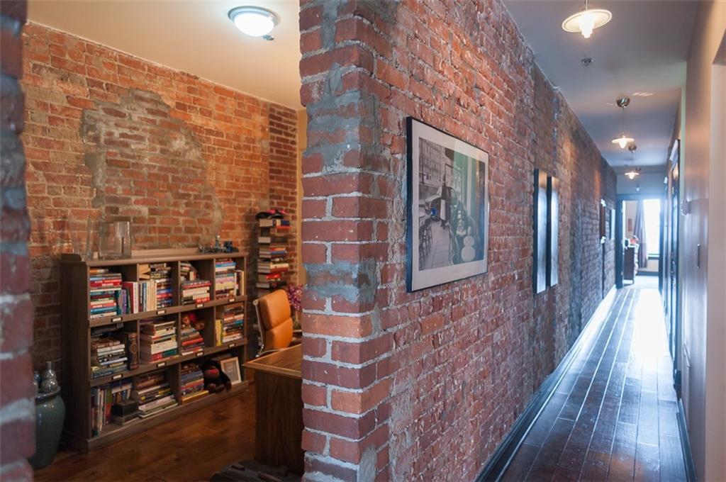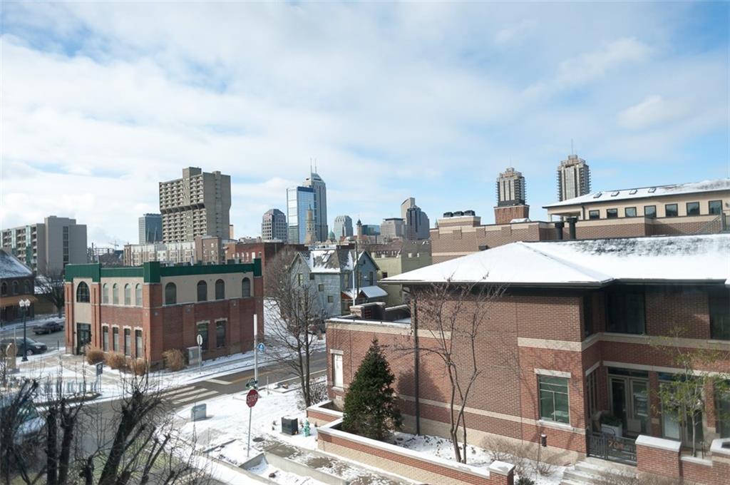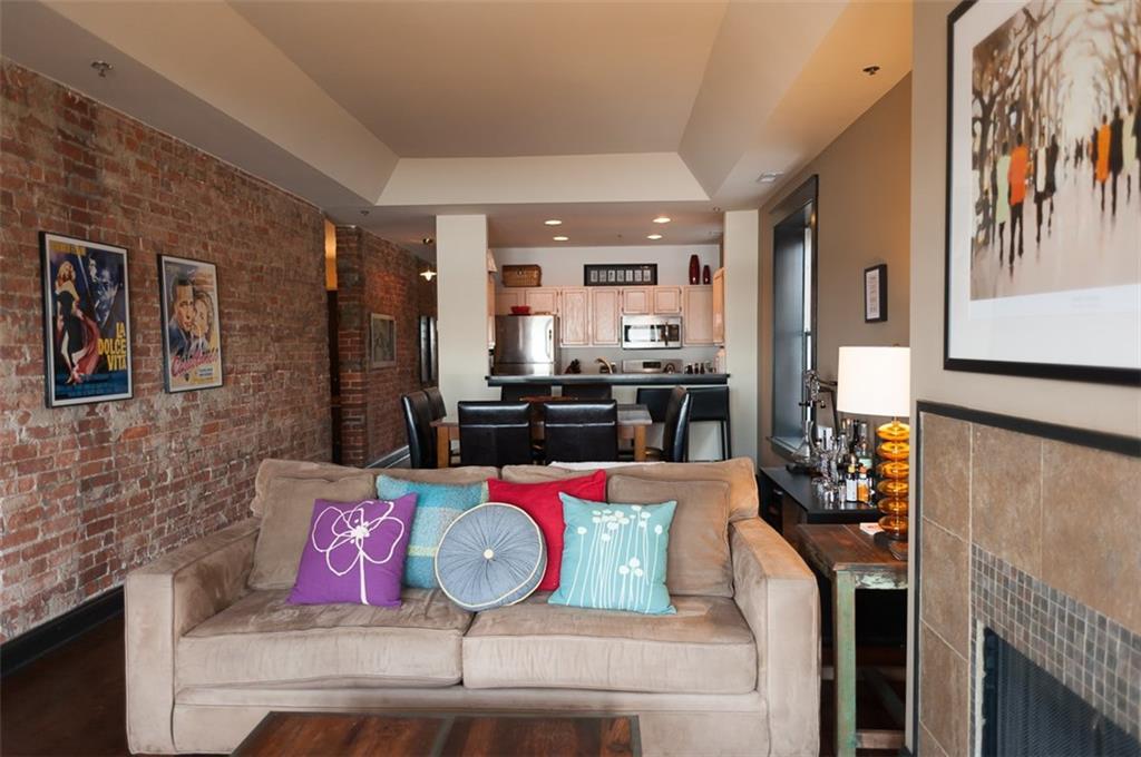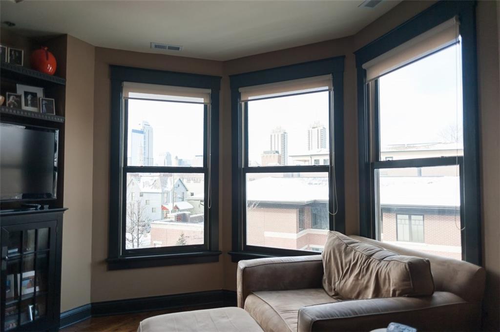 Prepare for Urban chic! Exposed brick, newer updated HVAC, appliances, hardwood floors & raised ceilings plus awesome view of downtown! 2 BR, Den/Bonus room + 1.5 Jack & Jill type bath. Gas fireplace, open floor plan & top floor! Owners are so sad to leave. One car detached garage in rear, plus large additional storage in common area basement! Heart of Mass Ave Cultural District. Large windows allow for natural light & exposed brick hallway perfect for artwork! Appointment needed due to fur child!