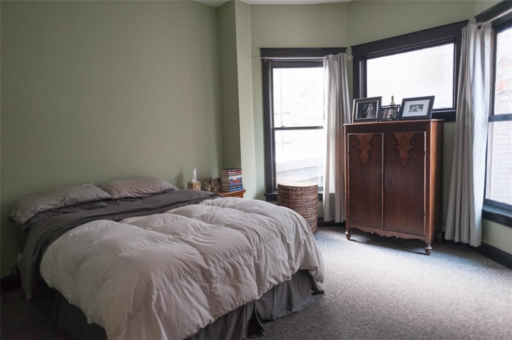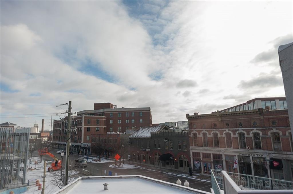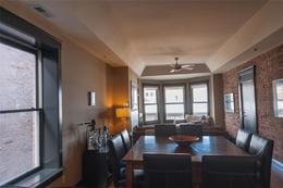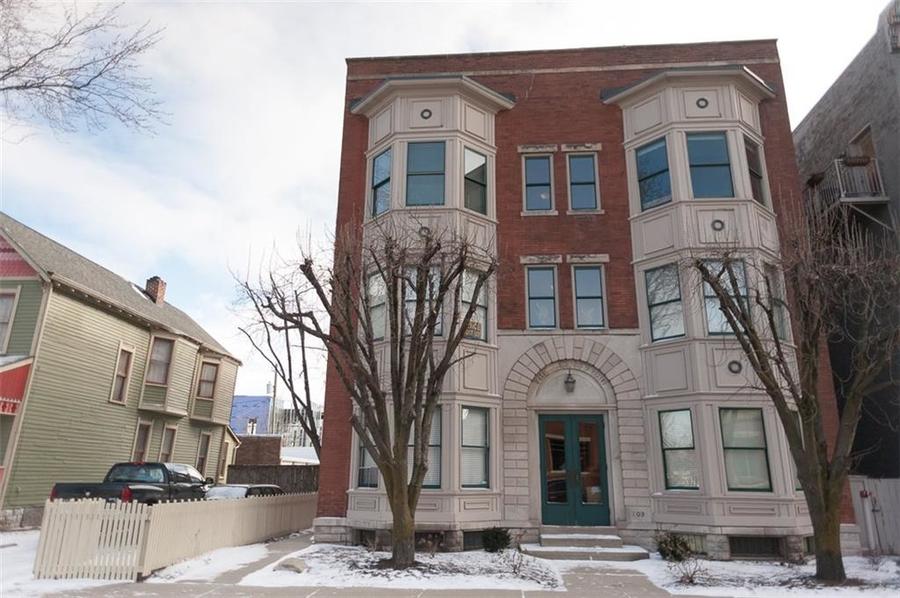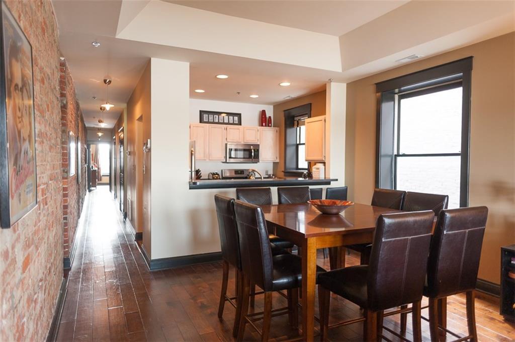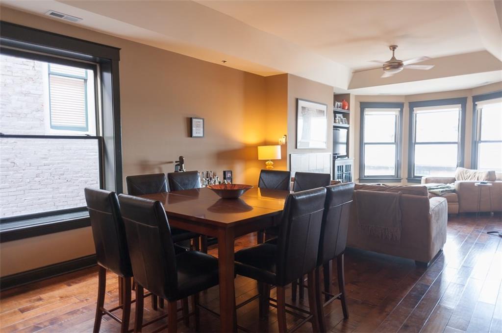 Prepare for Urban chic! Exposed brick, newer updated HVAC, appliances, hardwood floors & raised ceilings plus awesome view of downtown! 2 BR, Den/Bonus room + 1.5 Jack & Jill type bath. Gas fireplace, open floor plan & top floor! Owners are so sad to leave. One car detached garage in rear, plus large additional storage in common area basement! Heart of Mass Ave Cultural District. Large windows allow for natural light & exposed brick hallway perfect for artwork! Appointment needed due to fur child!