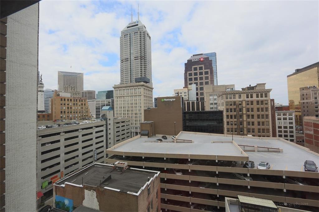 Grab the absolute best margarita in town at 110 E. Washington's Adobo Grill before heading up to entertain friends on the balcony of your super cool 2BR/2BA 11th floor condo in the heart of Downtown. Live a short walk to Colts & Pacers games! Enjoy hip urban living while taking in cool views of Downtown. Open floor plan with nice kitchen featuring maple cabinets & breakfast bar. The living room flows to an office area off a spacious master suite with large, walk-in closet. Pamper yourself in the jetted whirlpool tub off the second bedroom. Decor & amenities include freshly painted gray walls, maple floors, built-in speakers, ceiling fans & custom window coverings. Stay out of the rain using your parking space in the connected garage. Add personal touches to make this your Downtown dream space!