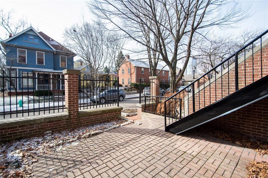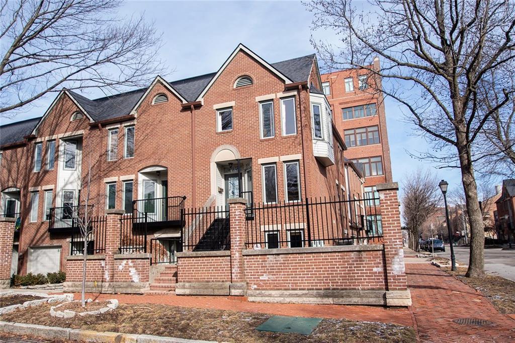Corner Lockerbie Glove Townhome! East and south light floods this space! Vermont Streetscape views plus morning sun! Doesn't get any better! Entrance on Vermont and garage faces Park Ave. Brick patio with a bonus sideyard!! Owner has cared for with TLC! Historically this was originally two units he joined but owner has decided to downsize! Original "Stanton" floor plan with windows on two sides! Master bedroom features a lovely bay window with east sunlight! Make this your downtown dream home and you won't be disappointed! Walk to Cultural events, Mass Ave. and several restaurants! Garage has brick wall, showroom finish to floor and extra width so can you say "wine storage?" Owner is in process of adding needed walls to separate openings!