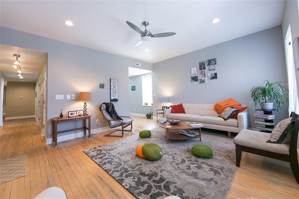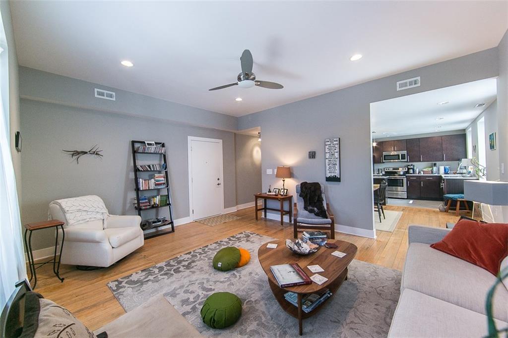 Beautifully updated, 2BR/2BA PENTHOUSE LOFT in Old Northside. Quiet, happy space flooded w. light from windows galore w. sexy energy saving cellular shades. Expansive 1,600 sf floorplan w. 9' ceilings, condo quality finishes thru-out, distressed maple floors, espresso cabinets, modern ceiling fans, track & recessed lighting, tons of closets + extra storage. Huge primary BR w. maple floors, WIC, double vanity in elegant bath w. Kohler/Sterling fixtures, ceramic tile floors. Gourmet kitchen w. acres of counter space & sleek cabinetry, pantry, SS appliances. Laundry room w. full sized W/D. One reserved parking space @ $60/mo. Garden plots for gardening. Nicely equipped fitness center. One of six apts in quiet, attractive, fully restored brick building close to everything downtown!